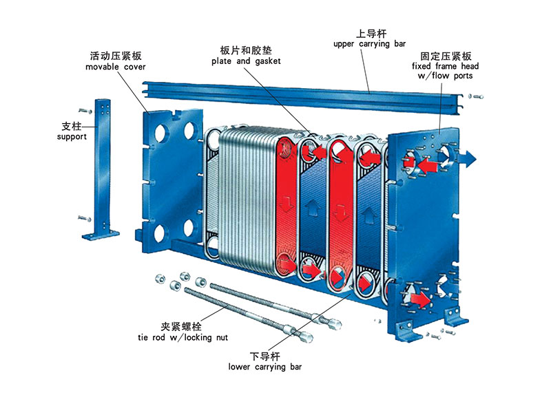 一、產(chǎn)品概述板式換熱器廣泛應用于供熱取暖、熱水洗浴、空調(diào)、液壓油冷卻、石油化工、制藥、食品加工等領(lǐng)域。板式換熱器是目前各類換熱器當中換熱效率很高的一種換熱器,它占用空間小,安裝拆卸方便。板式換熱器的結(jié)構(gòu)分解如圖1,主要部件是由換熱板片、密封膠墊、夾緊板、導桿、夾緊螺栓組成。換熱板片是由不銹鋼板壓制成型,它上面開有4個流道孔,中部壓成人字形波紋,四周壓有密封槽。密封槽內(nèi)粘有密封膠墊。換熱板片通過兩...